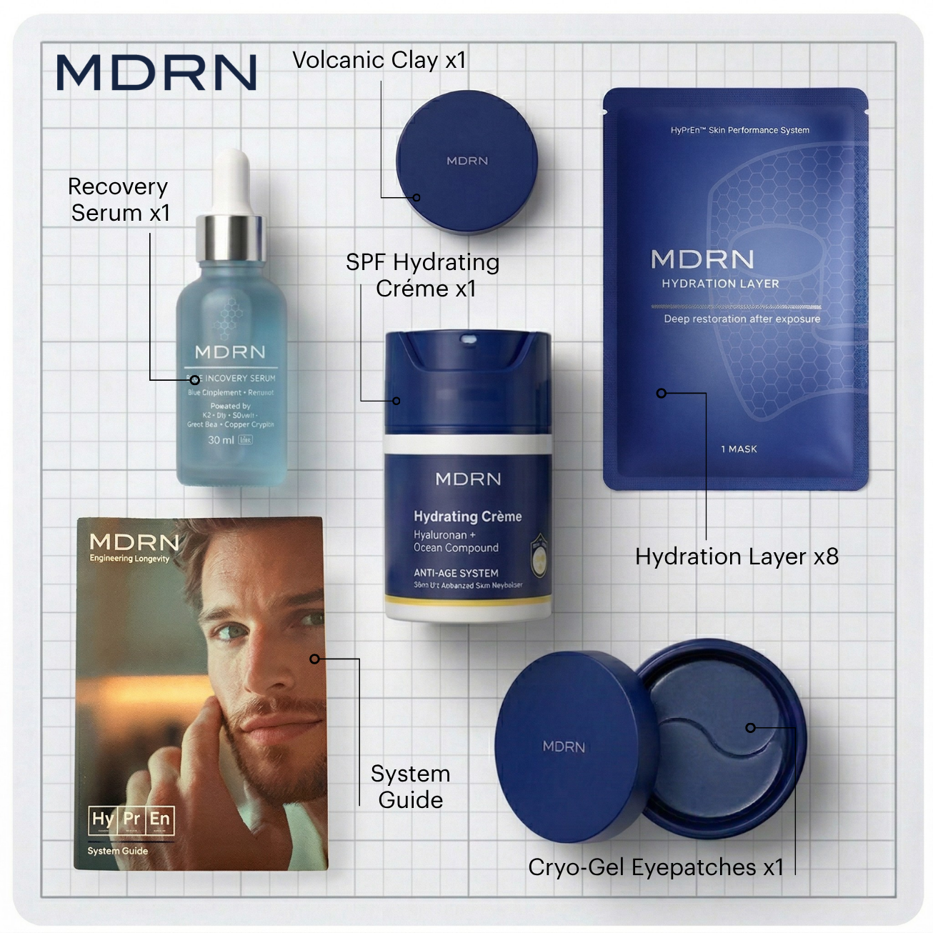 UV. Pollution. Blue light. Sweat. 90% of visible aging isn't genetics — it's what you're exposed to daily. HyPrEn is built for skin performance at the highest level.
